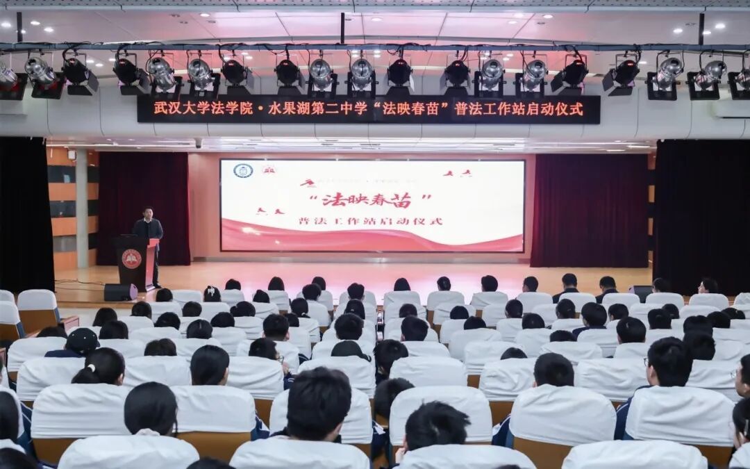 该工作站由武汉大学法学院与水果湖第二中学共建,是湖北高校专业力量“点对点”对接中学法治教育的创新尝试。武大法学院志愿服务队将围绕民法典、毒品预防、网络安全等十大主题,采用“1+1”双周交叉模式开展常态化普法教育:单周进行“普法微宣讲”,通过精讲与互动传授法律知识;双周开展“法治情景体验”,组织学生参与模拟法庭、情景剧、知识竞赛等活动,深化对法律知识的理解和应用。