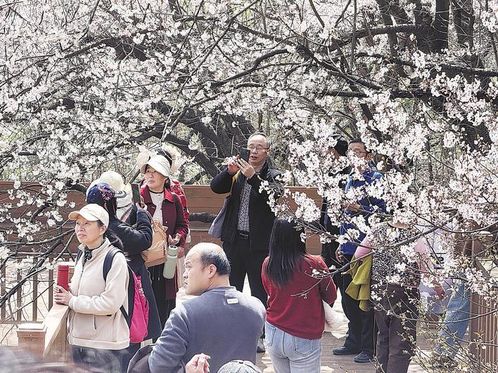 毛铺南山樱花谷内游人如织。(大冶市融媒体中心供图)