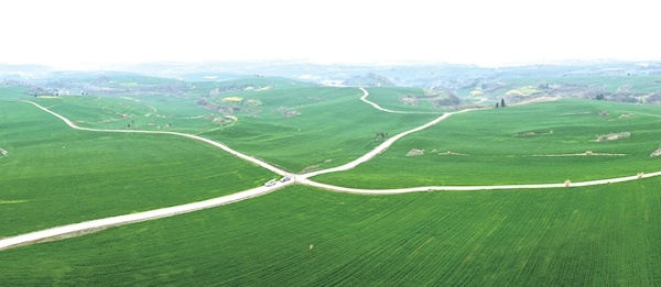 驱车丹江口市丹赵路街道茅腊坪村,麦田铺开另一种绿。风起时,这绿便有了波浪的形状,从脚边一直涌到远山脚下。放眼望去,饱满的春绿从田垄漫向天际,将整个山川染得生机勃勃。