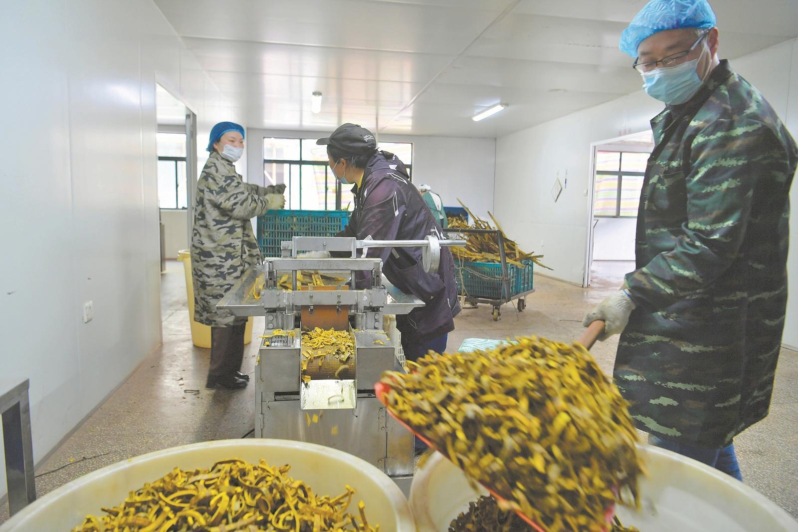 3月18日,位于南漳县的湖北思安药业有限公司生产车间内,工人正进行黄柏的切制、分拣作业。该企业主要从事中药饮片生产加工、销售,原料来源于该县种植的山茱萸、杜仲、黄柏、黄精、玄参、丹参等道地药材,年销售1200吨,主要销往上海、广东、安微等地。