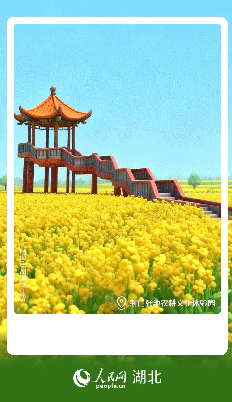 荆门张池农耕文化体验园,核心景区5500亩,沙洋全域70万亩油菜花连片绽放,金色花海与农耕村落、田埂小径相融,风吹花浪翻滚,满是田园烟火气,沉浸式感受春日农耕诗意。
