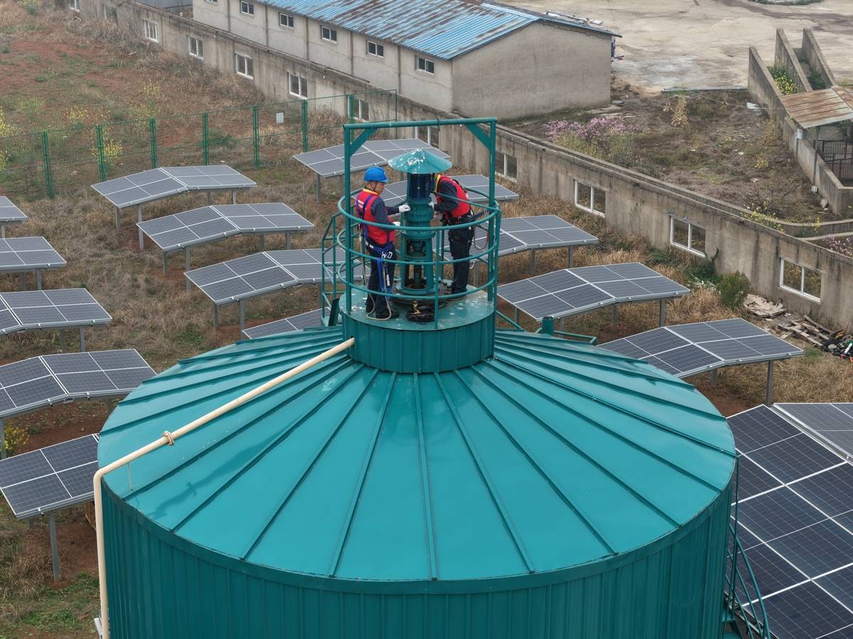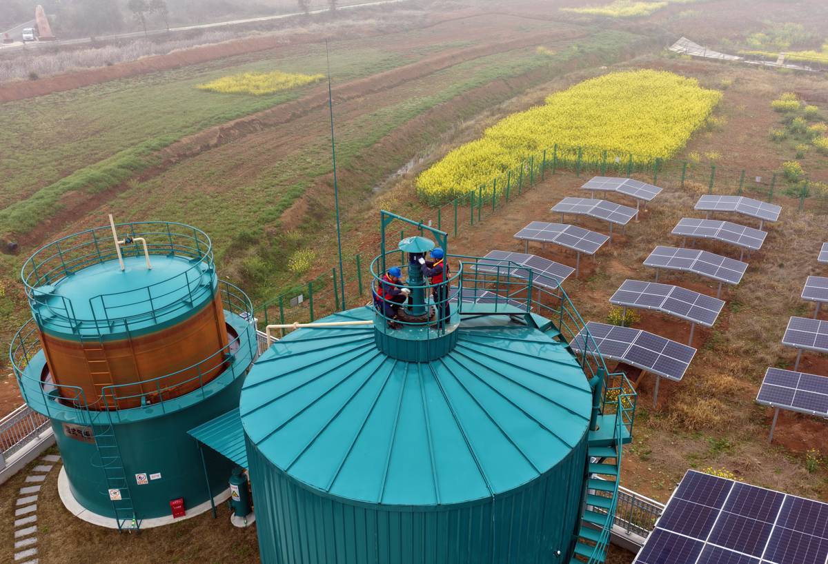 3 月 25 日,国网孝感市孝南区供电公司运维人员对雨坛村 30 千瓦援建沼气发电站开展巡检,保障电站安全稳定运行,让村民用上清洁绿色能源。雨坛村有畜禽养殖、生态种植、休闲旅游等产业。2025 年起,国网孝感供电公司推进农村能源革命,打造 “种 — 养 — 沼 — 电” 循环模式,电站年清污 4500 余吨、产沼气 7.2 万立方米、发电 8.6 万度,减碳超 430 吨。该村还建成 120 千瓦光储充充电站、分布式光伏、光伏路灯及健身器材,构建 “绿能生活圈”,以绿色能源赋能文旅产业,为乡村振兴注入强劲动能。(湖北日报全媒记者 陈迹 通讯员 余健兵 摄)