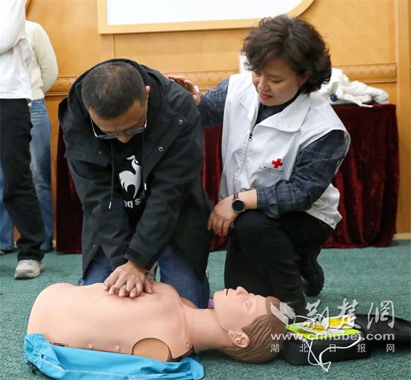 武汉市中心医院“红十字应急救护培训基地”的首期应急救护培训正式开课。通讯员供图