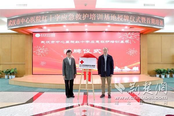 武汉市红十字会向武汉市中心医院授予“红十字应急救护培训基地”牌匾。通讯员供图