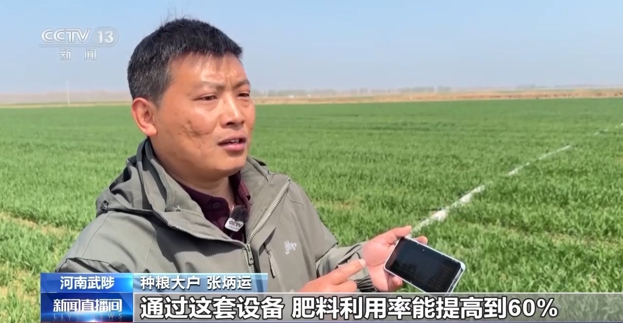 种粮大户 张炳运:不用到田间再去开关阀门了,很轻松就能管理3000多亩地。通过这套设备,肥料利用率能提高到60%,节水能节约40%的灌溉量。