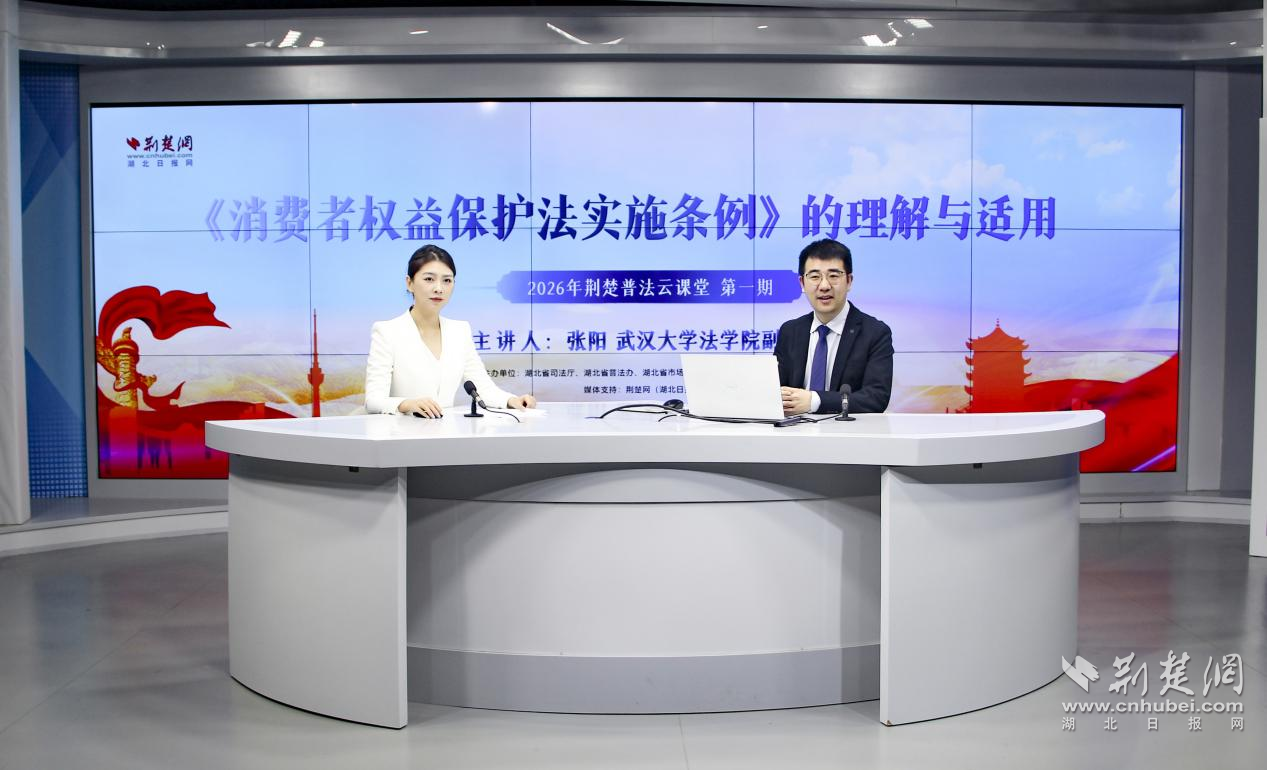 荆楚网(湖北日报网)讯(记者 周光洁)荆楚云课堂,名师来普法。3月26日,由省司法厅、省普法办、省市场监管局、省消委主办的2026年荆楚普法云课堂第一期在湖北日报5G演播室开讲,直播累计吸引42.32万网友在线观看学习。