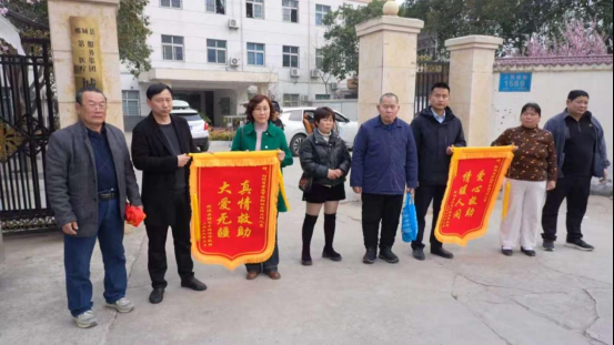 到达河南郸城县,昌达堂妹及家人为工作人员送锦旗。通讯员 供图