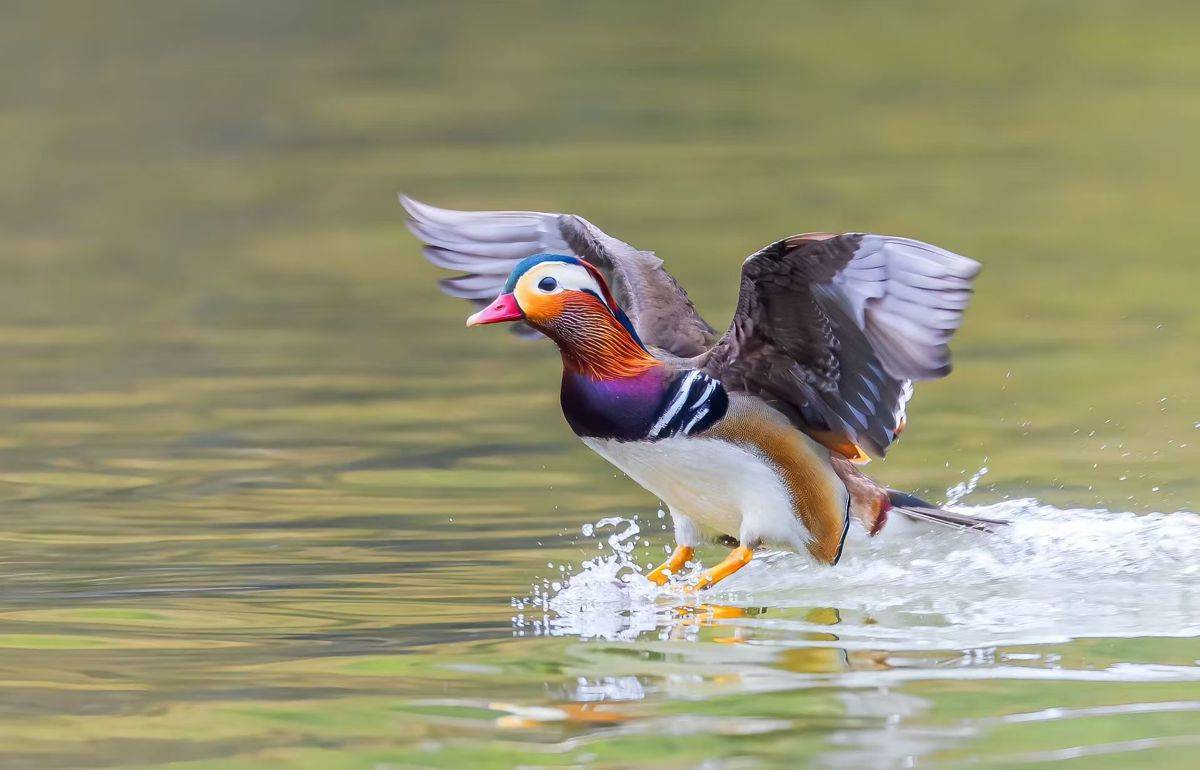 画面中,鸳鸯成双成对、悠游自得,雄鸟羽衣华美、灿若云霞,雌鸟褐羽白眉、素雅温婉。中华秋沙鸭身姿优雅,它们时而逐浪清波、身姿矫健,时而振翅凌空、掠水飞翔,在南河碧波之上划出灵动弧线。