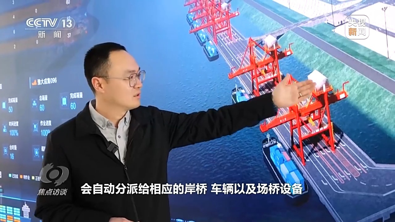 河南港航集团周口港务有限公司设备信息部经理 周旋:码头管理系统接到船舶作业任务之后,会自动分派给相应岸桥车辆以及场桥设备,自动化操作系统只需要6到8个人进行日常管理就可以完成场内所有工作任务。