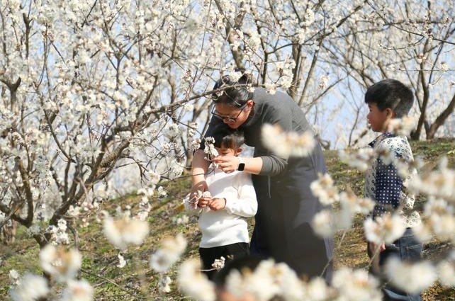 春分时节,房县城关镇八里村万亩樱桃园迎来盛花期,洁白的花朵将层层山峦装点得诗意盎然,吸引众多游客前来踏青赏花。(通讯员 杜达巍 摄)