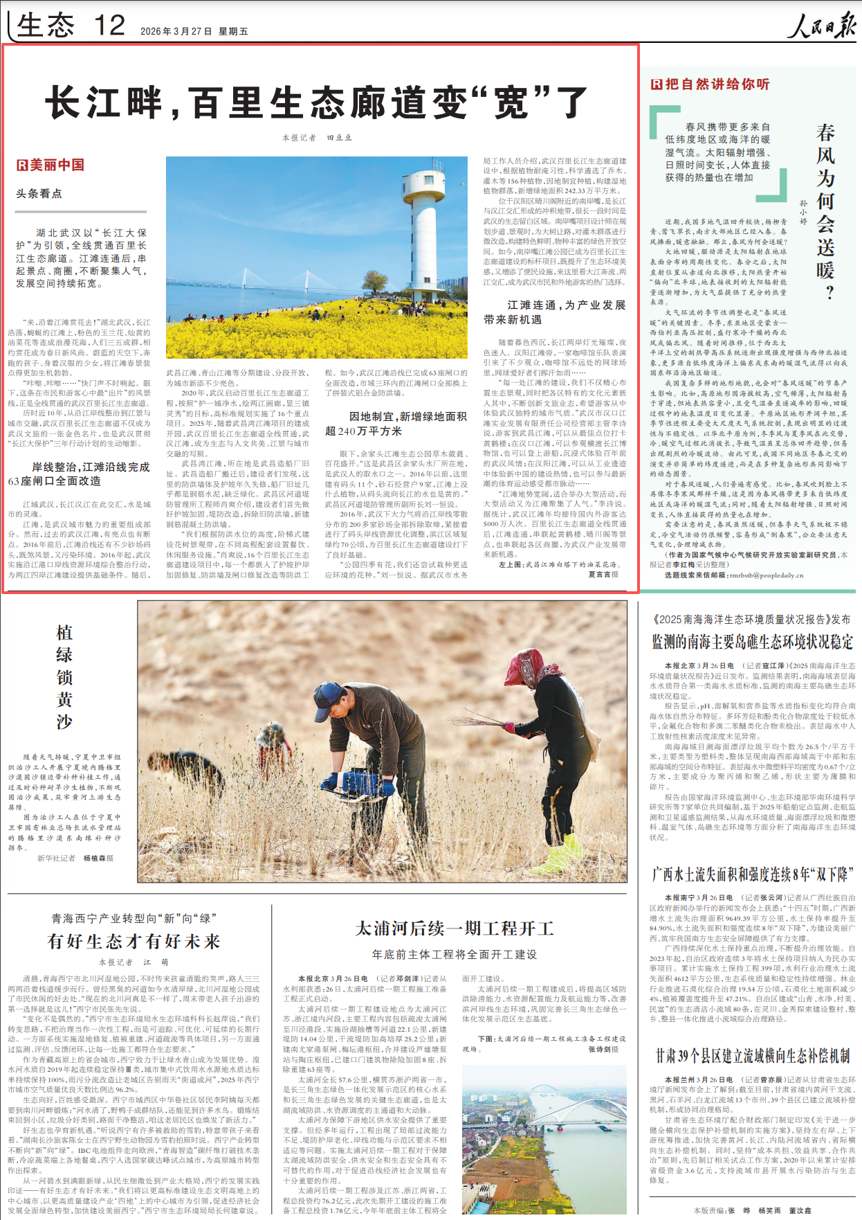 原标题:长江畔,百里生态廊道变“宽”了(美丽中国)