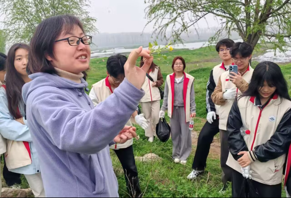 垃圾清理的同时,学院专业教师仇小艳结合自身专业知识,现场开展外来入侵物种科普宣讲,重点解读加拿大一枝黄花的危害、辨别技巧及防控方法。她细致讲解,该物种单株可产生数万粒种子,根系发达,会疯狂抢夺本土植物养分、压制其生长,严重破坏生态平衡,同时现场演示识别要点和科学清除方式,提醒市民提高防范意识,主动参与外来物种防控,形成“全民护绿、共同守生态”的良好氛围。