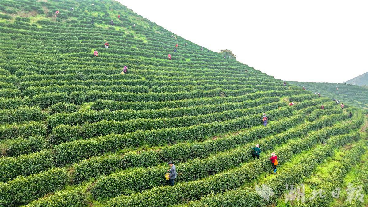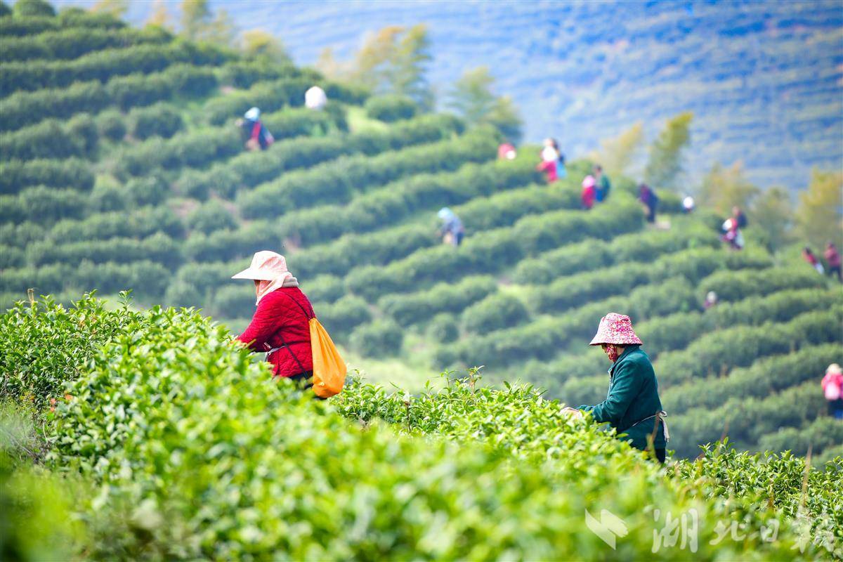 3月25日,黄石新港园区金海管理区女儿山茶园开园采茶,茶农忙于采摘“明前茶”供应市场。