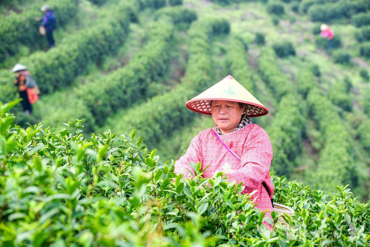 3月25日,黄石新港园区金海管理区女儿山茶园开园采茶,茶农忙于采摘“明前茶”供应市场。清明临近,气温回升,茶园进入“明前茶”采摘高峰期。近年来,黄石加速助推茶叶种植、加工、销售与文化、旅游、生态等资源融合共享,形成了从育苗、种植到加工、销售的全产业链,带动当地群众增收,拓宽乡村产业发展空间。(视界网 王江 周巍 摄)