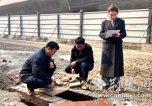 审计人员在施工现场查看雨水口施工质量是否符合规范要求。通讯员供图