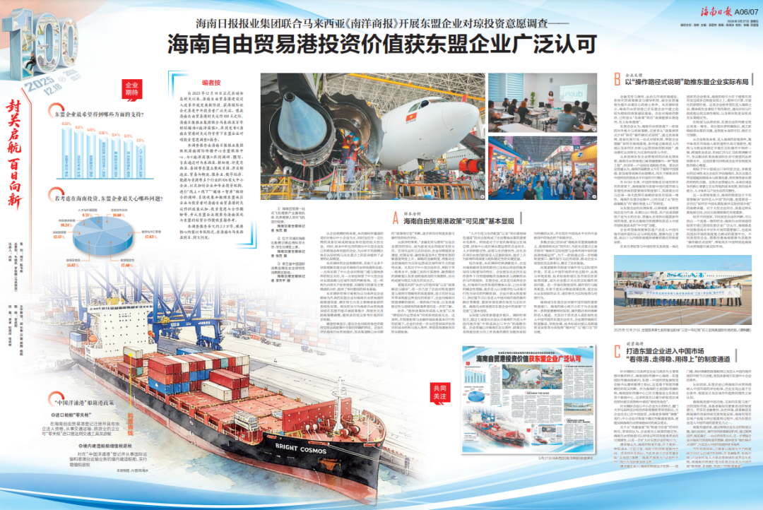 海南日报报业集团联合马来西亚《南洋商报》开展东盟企业对琼投资意愿调查——海南自由贸易港投资价值获东盟企业广泛认可