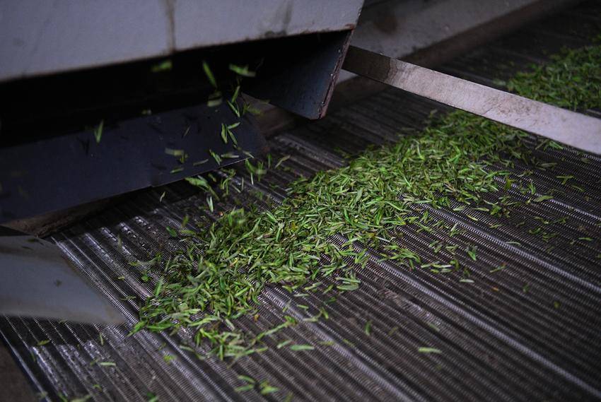 ▲▼3月26日,在保康县马良镇溪峪村茶叶加工厂,工人在摊晾“明前茶”。