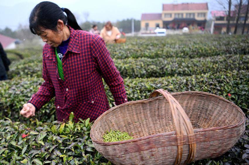▲▼3月26日,在保康县马良镇溪峪村茶园,茶农在采摘“明前茶”。