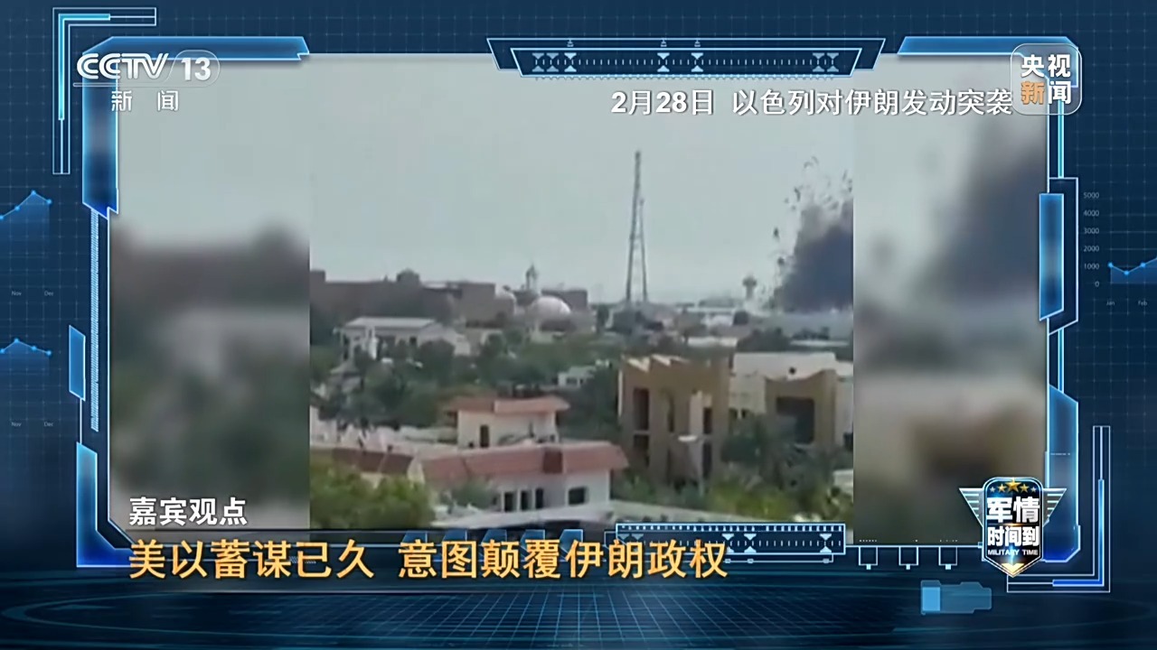 总台军事观察员 魏东旭:首先美国和以色列蓄谋已久,提前进行了兵力集结,在2月28日当天针对伊朗进行空袭,战略意图是要颠覆伊朗的国家政权。所以在空袭的兵力当中,有一些战斗机是扮演狙击手的角色,比如说以色列空军的F-15战斗机,它可能就会挂装射程1000公里的空射型弹道导弹,针对它情报体系所确认的伊朗高层人员,包括最高领袖的所在地,进行远程精准火力的打击。除此之外,还要针对伊朗的军事能力进行最大程度削弱;所以第一波次的空袭和远程火力打击,针对伊朗的核设施相关的研究机构,包括弹道导弹的发射阵地,以及机动部署的弹道导弹发射车都会进行密集的火力打击。