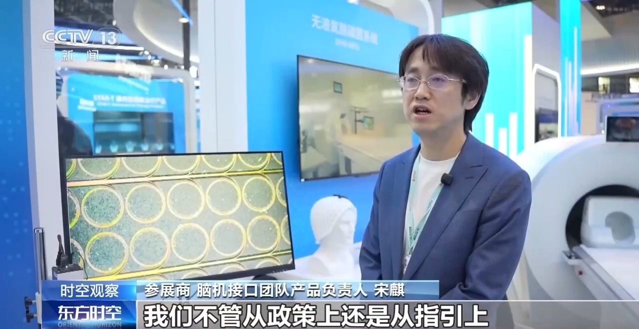 参展商 脑机接口团队产品负责人 宋麒:不管从政策上还是从指引上,政府都给了非常大的推动作用。第二,当然也是我们国内非常完善的产业链配套,这样也使得我们能够真正实现这种高通量脑接口的全链条自主可控。