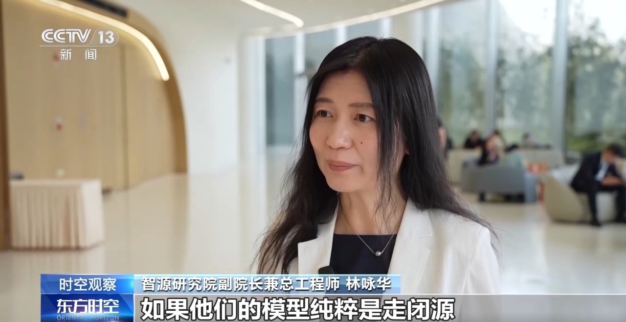 智源研究院副院长兼总工程师 林咏华:咱们国内不断去开源模型,如果他们的模型纯粹是走闭源,那肯定要考虑商业的长期运营,这实际上是一个很严格的考核。我们希望借开源的力量来推广我们的技术,打造技术的传播,打造品牌的影响力,开源是很好的一种方法。
