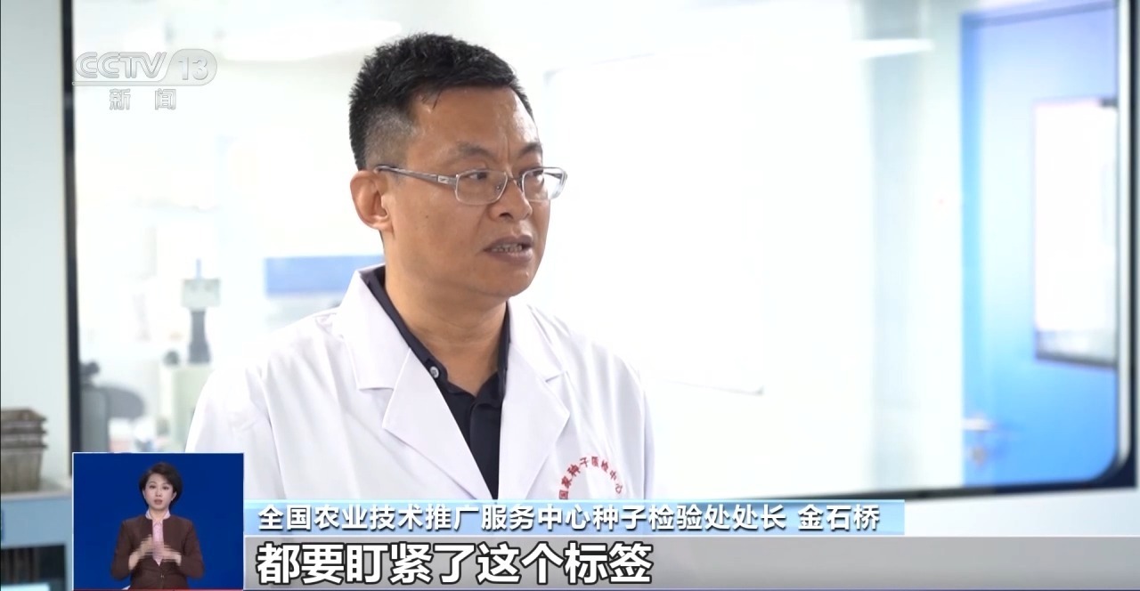 全国农业技术推广服务中心种子检验处处长 金石桥:要盯紧了这个标签上的信息,因为法律规定种子标签有一个真实性原则,这里的每一个信息标注不真实,都可能触及种子法的法则。