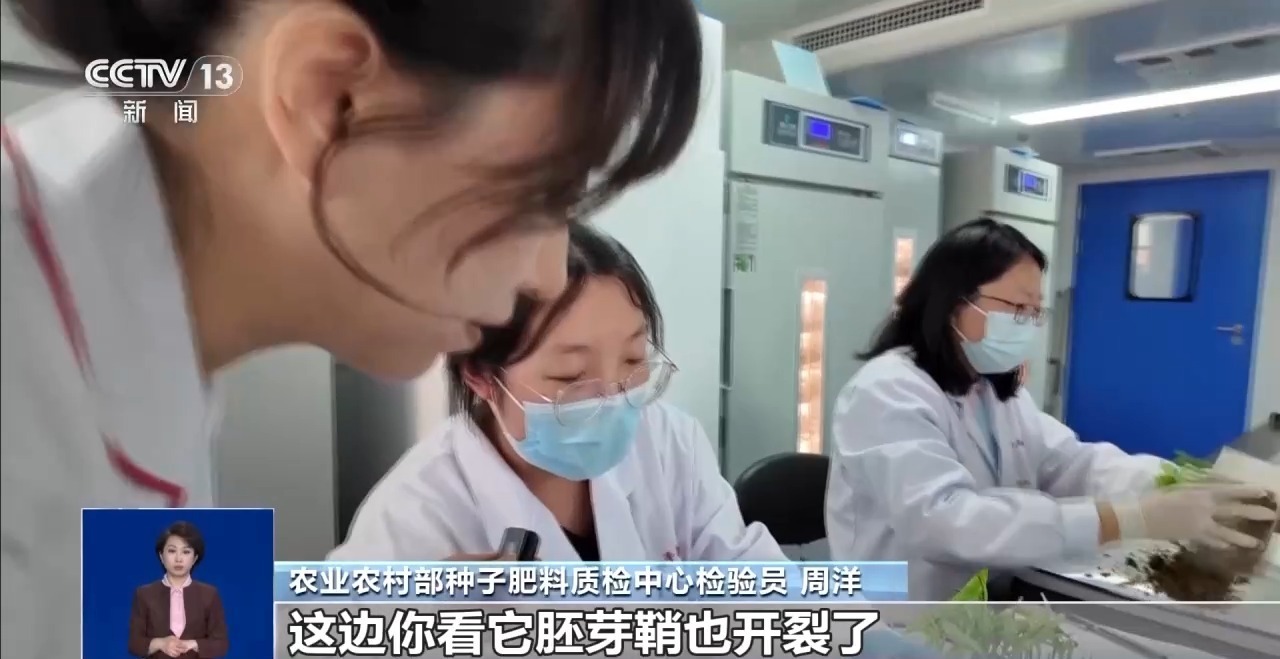 农业农村部种子肥料质检中心检验员 周洋:你看它胚芽鞘也开裂了,然后这个叶子,它不仅立不起来,还撕裂得比较严重。