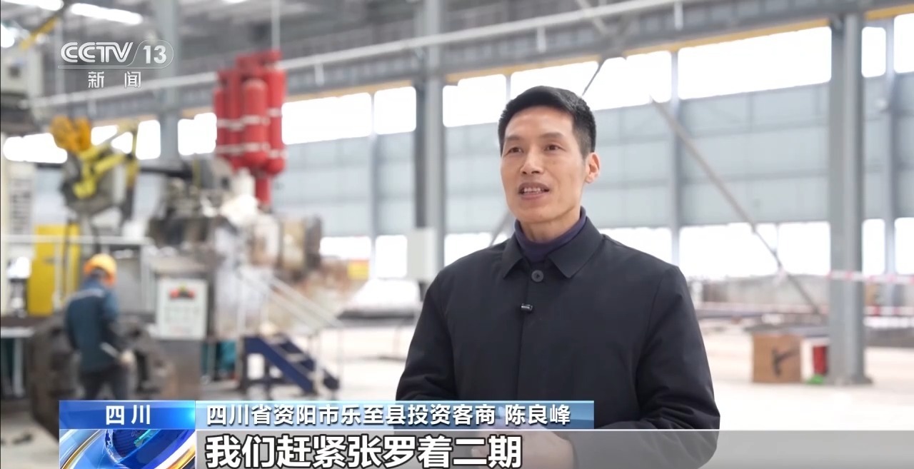 四川省资阳市乐至县投资客商 陈良峰:现在一期刚运行,我们赶紧张罗着二期,就是要赶在高铁开通之前抢个先机。