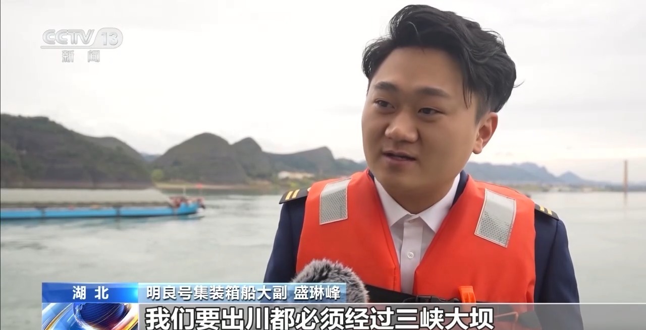 明良号集装箱船大副 盛琳峰:我们要出川都必须经过三峡大坝,通过三峡船闸,比较拥堵。如果航运新通道建设好后,单程可以节省3到5天的时间。