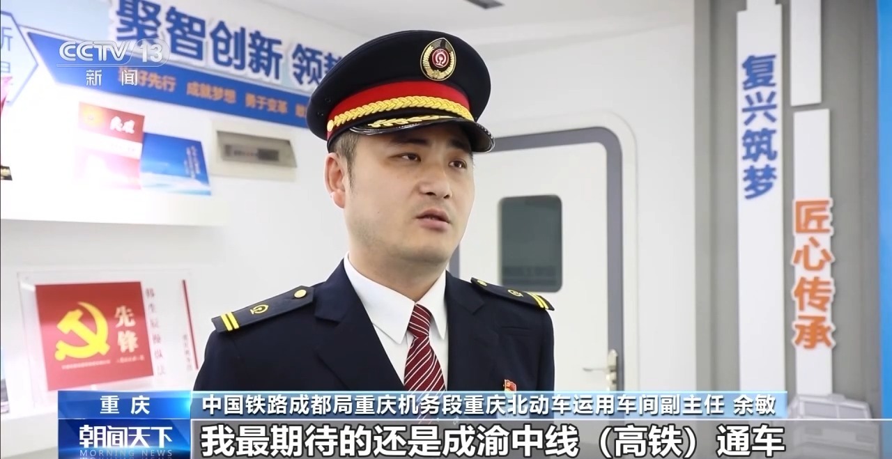 中国铁路成都局重庆机务段重庆北动车运用车间副主任 余敏:我最期待的还是成渝中线通车,因为上面会跑着我们中国最先进的CR450动车组,我希望在开通那天去亲自驾驶去感受它。
