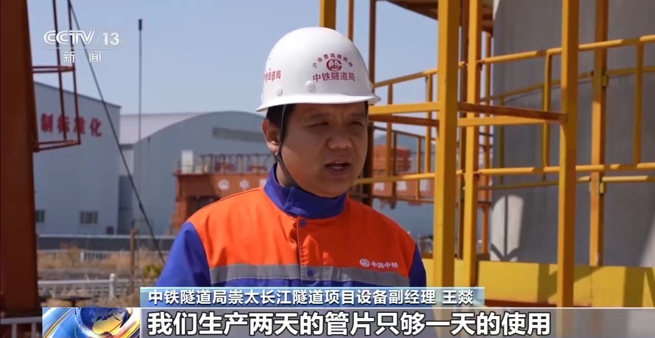 中铁隧道局崇太长江隧道项目设备副经理 王燚:采用传统的方式,我们生产两天的管片只够一天的使用,干一天就得歇一天。通过对整个流水线进行改造升级,提升了一倍的效率。工程实际上是倒逼了一些传统的行业进行转型升级。