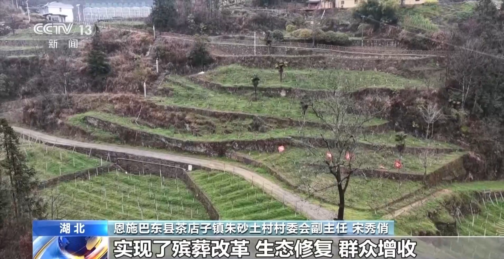 湖北恩施巴东县茶店子镇朱砂土村村委会副主任 宋秀俏:把闲置的坟园土地进行平整、复绿、利用,发展特色林果产业,实现了殡葬改革、生态修复、群众增收三者有机统一。