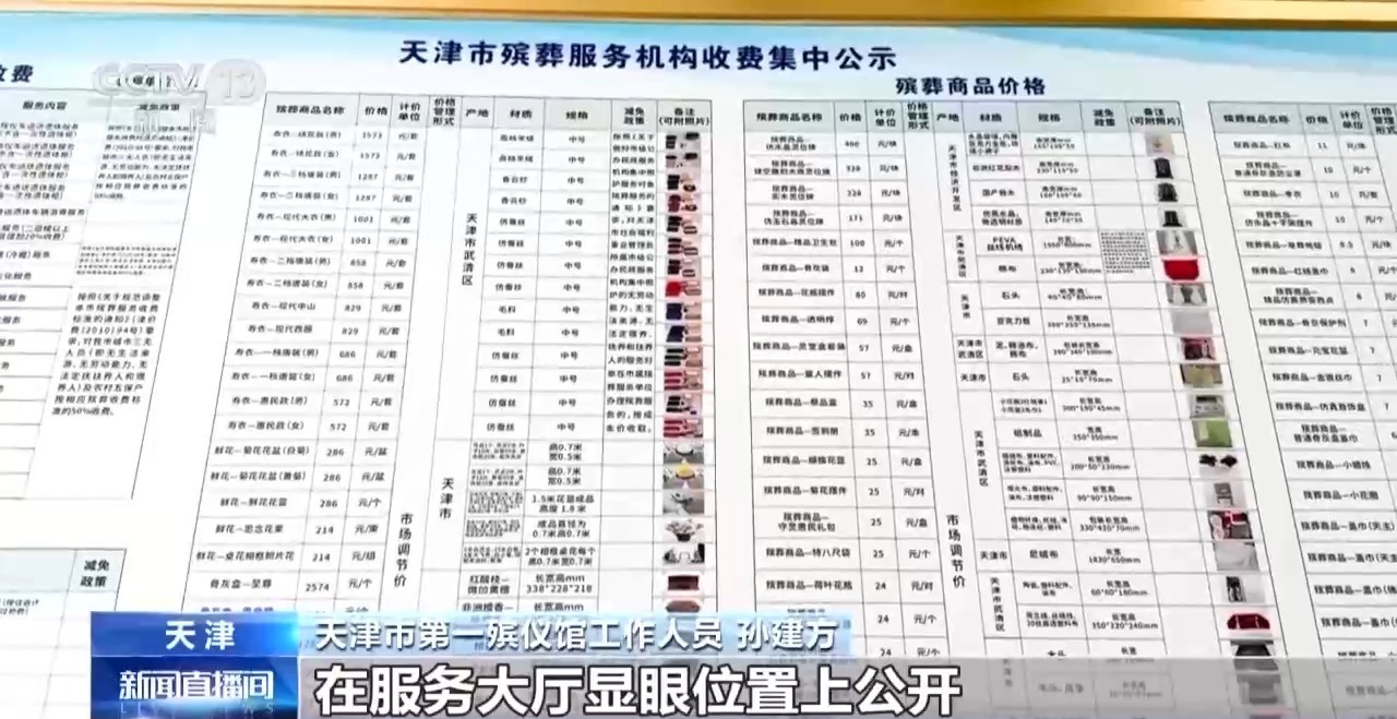 天津市第一殡仪馆工作人员 孙建方:把全部的服务内容、每一项收费标准都做成清晰易懂的公示牌,在服务大厅显眼的位置上公开,明码标价、一目了然。让老百姓消费心里有数、选得明白。