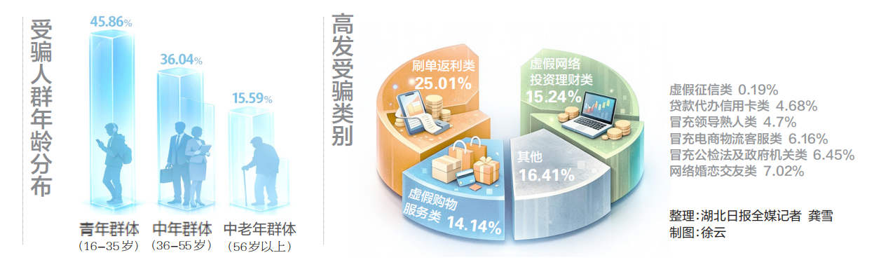 3月30日,湖北省公安厅召开新闻发布会,从年龄、性别、高发受骗场景等维度,基于数据分析,对2025年全省电信网络诈骗案件受骗人进行画像,介绍当前湖北电诈形势及特点,帮助群众持续提升反诈防骗意识和能力。