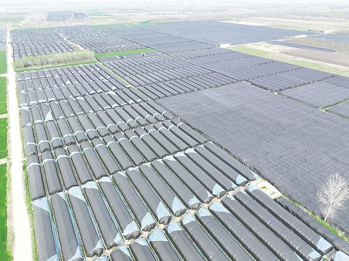 襄城区卧龙镇标准化羊肚菌大棚鳞次栉比。 (湖北日报通讯员 陈梦雪 摄)