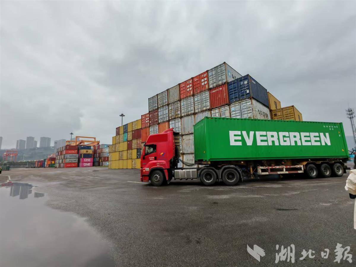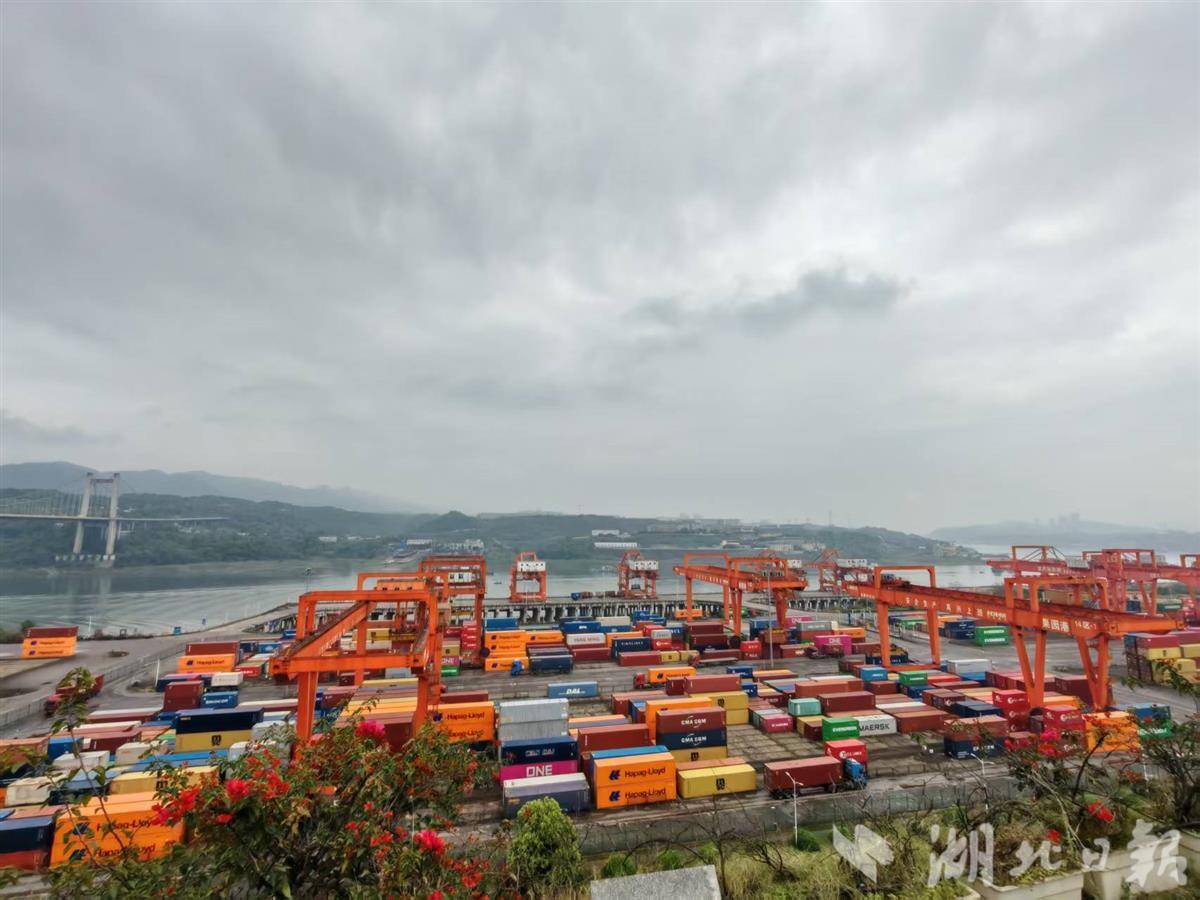 果园港集装箱作业区。(湖北日报全媒记者戴文辉摄)