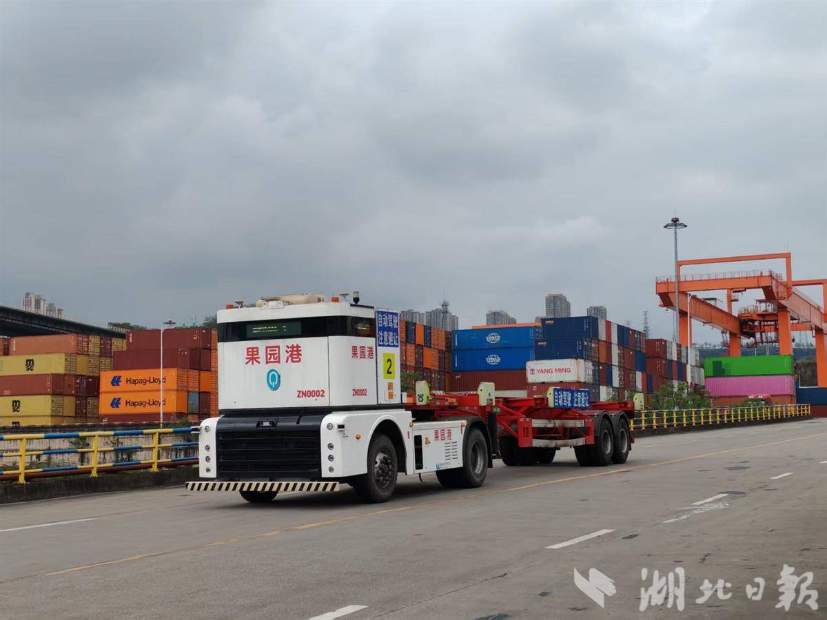 果园港无人集卡。(湖北日报全媒记者戴文辉摄)