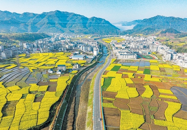 连日来,竹山县溢水镇何家湾村的千亩油菜花迎来盛花期,绵延的金色花海与错落民居、层叠青山相映成画,构成一幅生机盎然的春日田园画卷,吸引众多游客前来踏青赏花、拍照打卡,成为春季乡村旅游的热门地。记者刘昆通讯员章磊摄