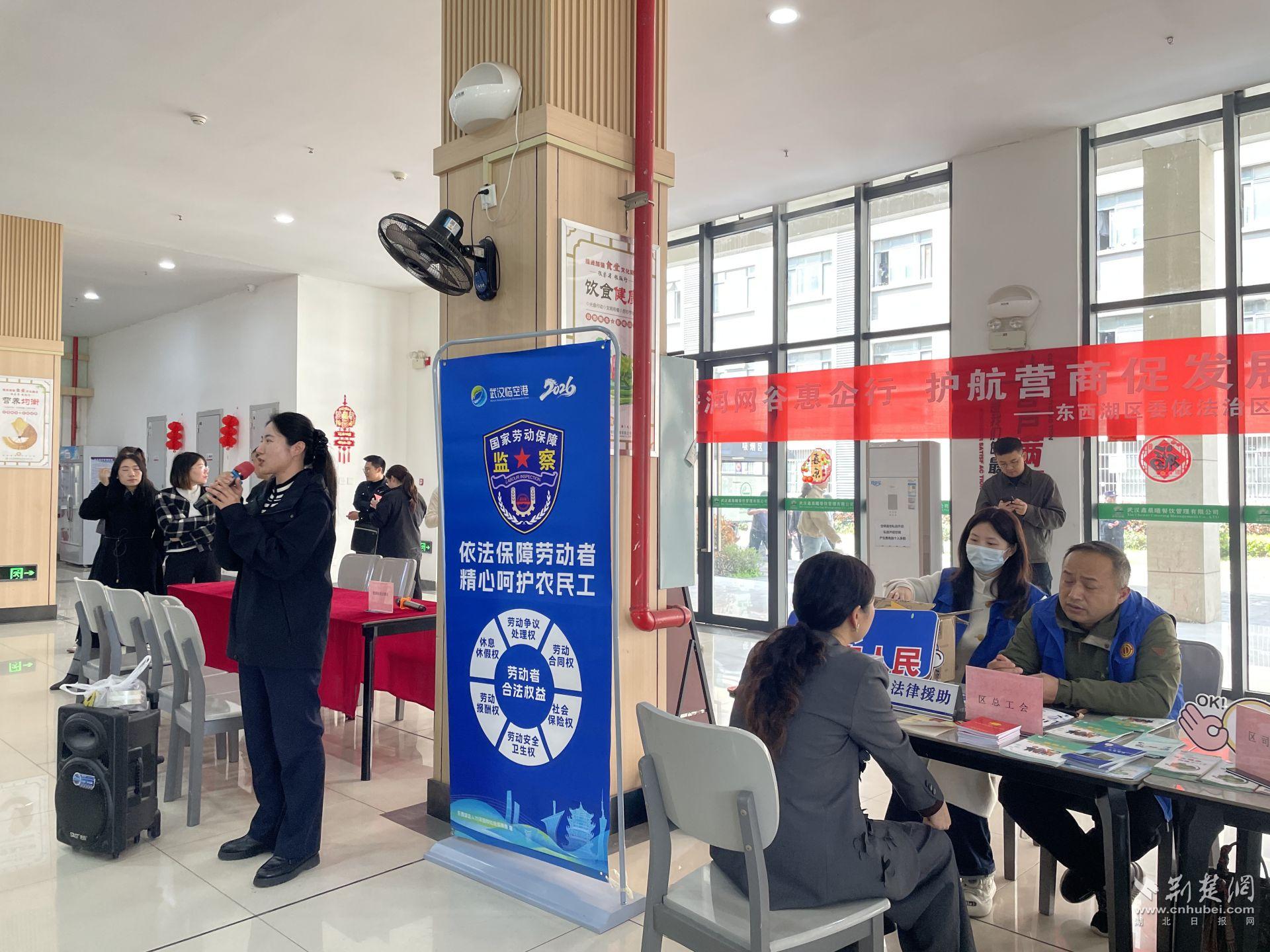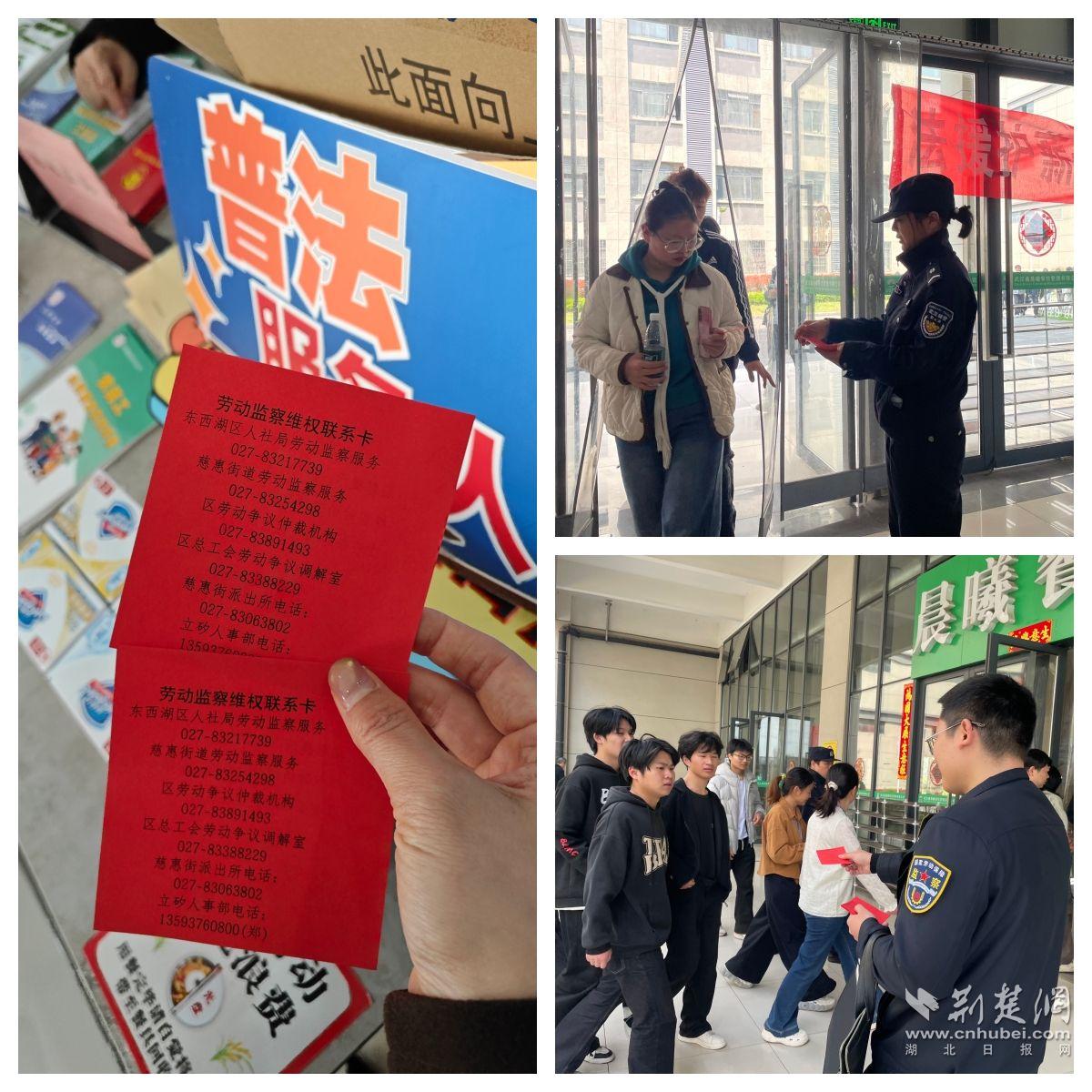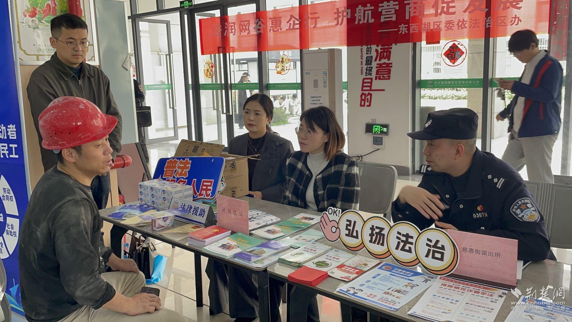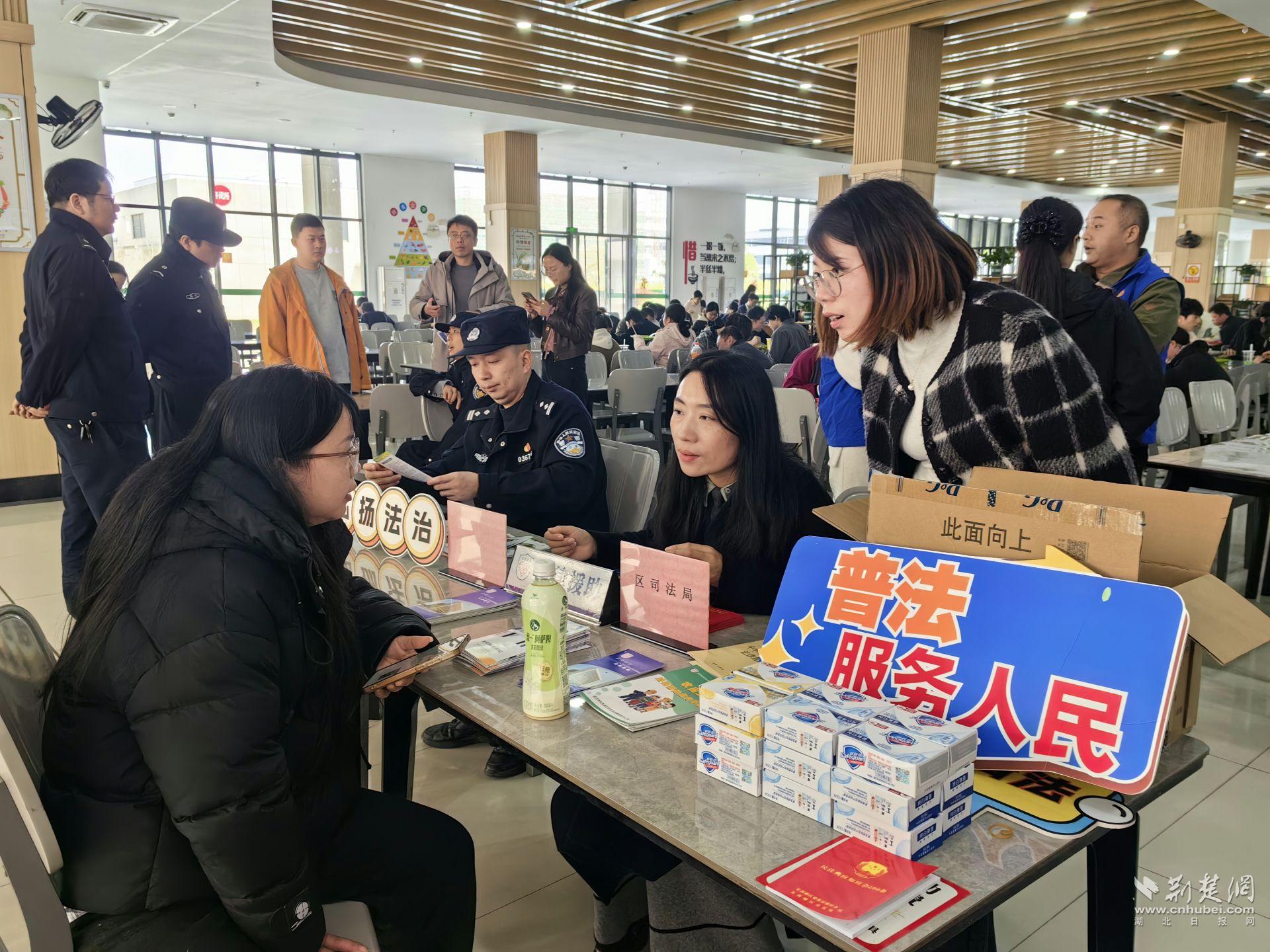 荆楚网(湖北日报网)讯(通讯员石春康)为深入推进“法润网谷惠企行”品牌建设,进一步规范园区企业劳动用工管理,切实维护广大劳动者合法权益,3月27日上午,东西湖区司法局联合区人社局、区总工会、慈惠街道办事处、区公安分局治安管理大队和慈惠街派出所,在立矽产业园员工食堂举办“依法用工护权益,规范用工促发展”主题普法宣传活动。