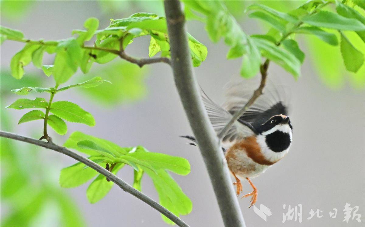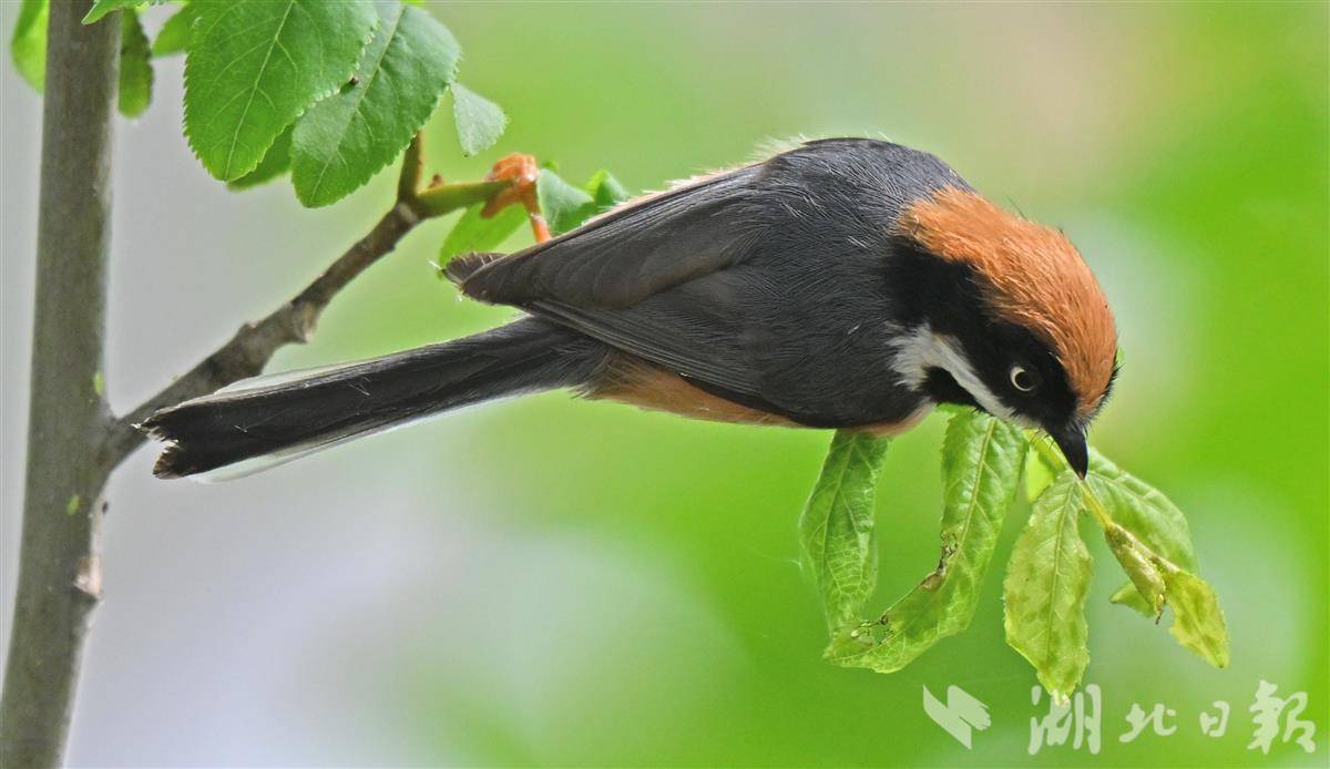时下正值春季,长江宜昌段岸边的防护林迎来嫩叶生长旺季,各类害虫也随之滋生,对树木生长构成威胁。作为农林害虫的天然天敌,红头长尾山雀属于中国“三有”保护动物,被列入《国家保护的有益的或有重要经济、科学研究价值的陆生野生动物名录》,在国际上被《世界自然保护联盟(IUCN)濒危物种红色名录》列为无危(LC)等级。它们以鞘翅目、鳞翅目等昆虫为主食,成群活动、动作敏捷,在枝叶间穿梭觅食,有效遏制了害虫蔓延,默默守护着江岸防护林的生态健康。