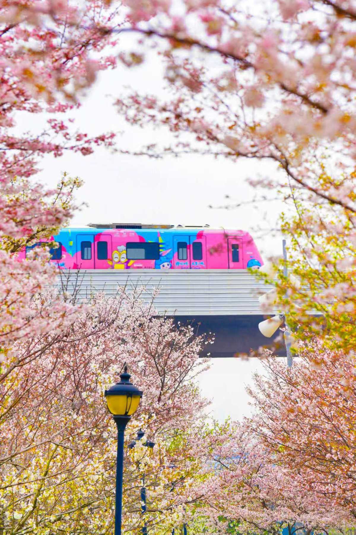 作为城市交通主动脉,武汉地铁日均客流约400万乘次,积极发挥“串联春日美景”的纽带作用。在黄浦路、三阳路、街道口等多座车站,樱花主题装扮及大屏影像营造出浓厚的赏花氛围;全程高架线路1号线开行“樱悦四季”主题樱花专列,车身饰以粉色樱花图案,车内融入四季流转的诗意设计。与此同时,城市公交优化与地铁的无缝接驳,实现“出地铁即上公交,下公交即入花海”的便捷体验,进一步延伸了春日赏花的出行半径。连续两个周末,李彦欣搭乘地铁打卡光谷四路、未来三路、王家墩东等多座车站周边的繁花景致,切身感受地铁串联起的满城春色。