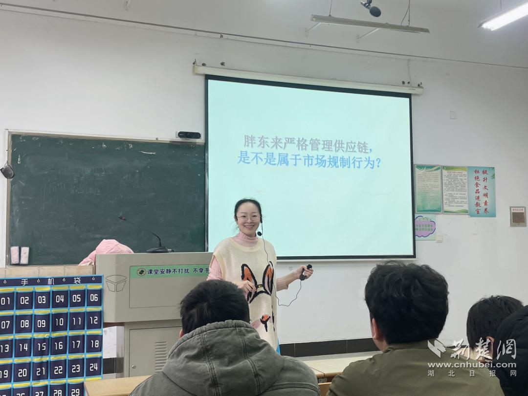 荆楚网(湖北日报网)讯(记者唐天琪 通讯员唐欣)“如果查出‘药水鸡爪’的人,自己也不专业、不独立,怎么办?”3月16日武汉城市学院经济法课上,关雅文老师的这个问题,让正讨论315晚会的学生们安静下来。前一秒,课堂还因“那个泡得又白又嫩的鸡爪”而充满吐槽,下一秒,话题已从对无良商家的声讨,转向了对市场规则本身的审视。