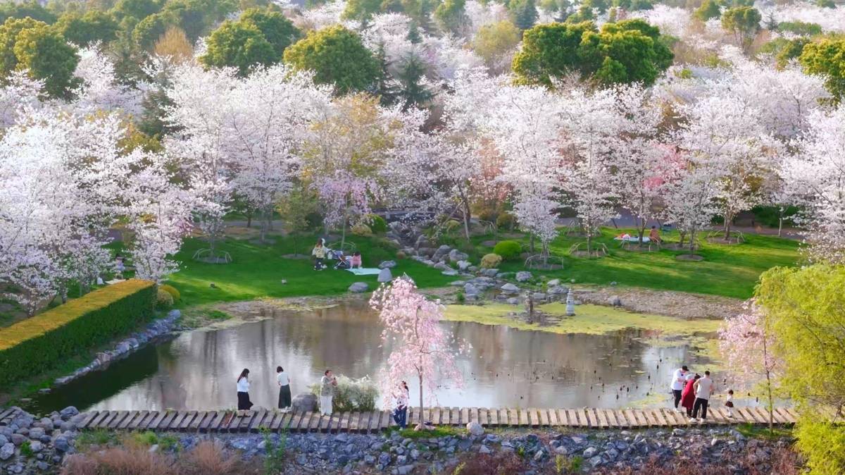 夏中华介绍,设计团队尊重原有地形地貌,不推山、不填塘、不滥伐原生林木,依着山势布局步道、顺着坡地栽种花木,让景观“长在山林里”。团队以樱花为亮点,搭配紫薇、红枫、寒梅等树种,构建起四季有景、层次丰富的生态空间。
