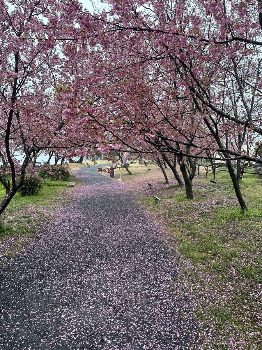 落雨时樱瓣沾露、烟笼花林,放晴后樱云漫卷、风落飞花。