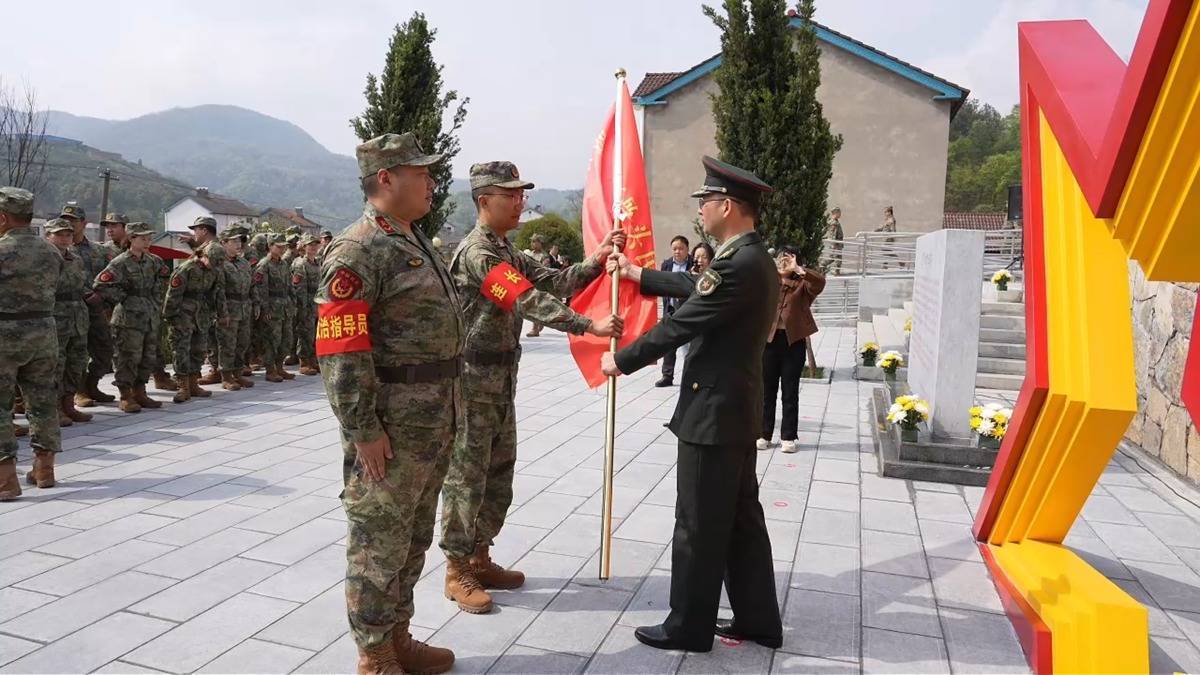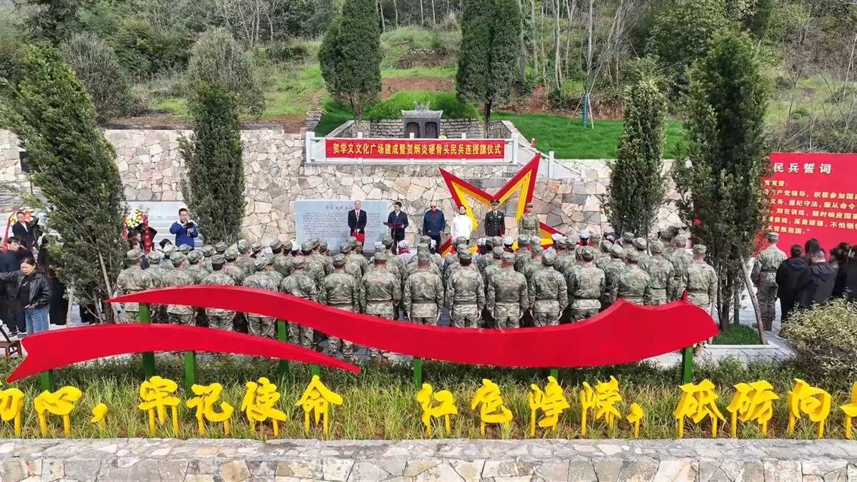 在现场,民兵们身着迷彩、精神抖擞,郑重接过承载着“硬骨头精神”的连旗,正式扛起传承红色基因、服务老区发展、守护一方平安的使命担当。