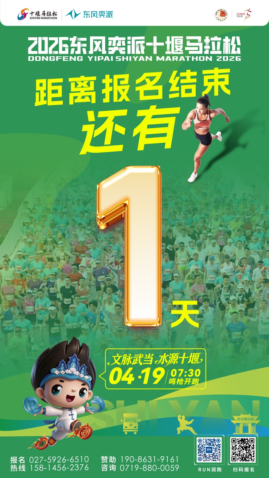 湖北日报讯(记者童军鹏、通讯员万可昕)2026东风奕派十堰马拉松将于4月19日7时30分在十堰奥体中心鸣枪起跑。作为中国田径协会认证的A类赛事,本届赛事总规模12000人,报名将于4月1日15时截止,目前报名通道持续开放。