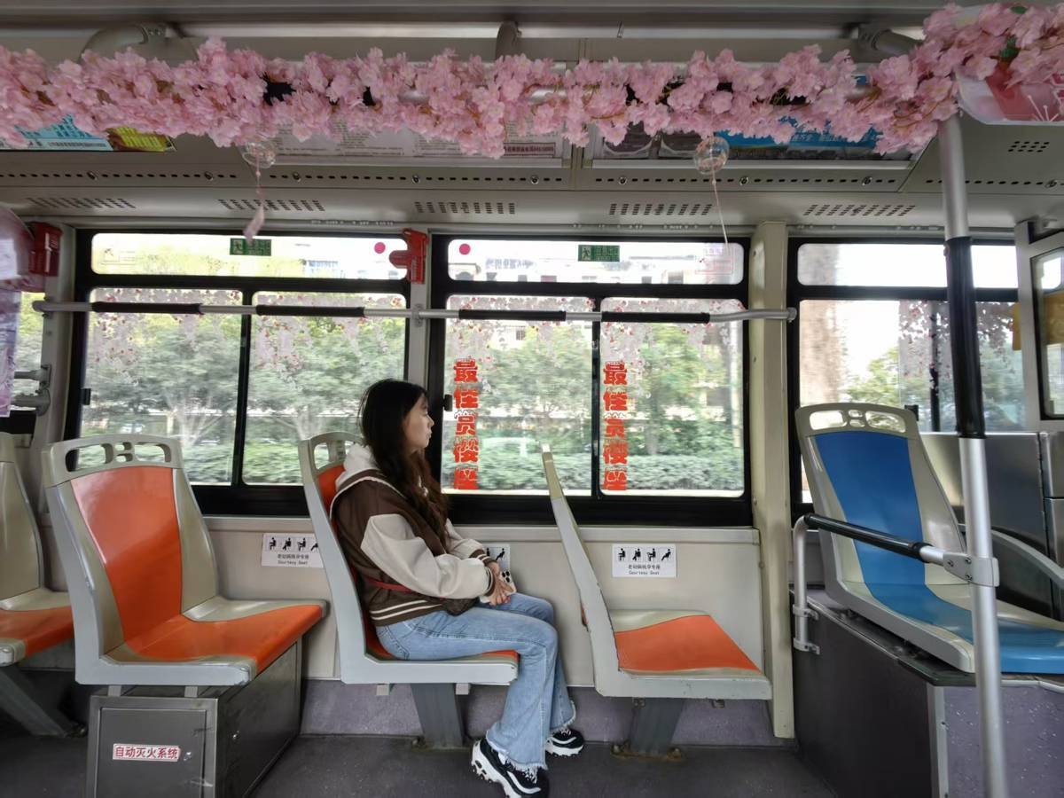 武汉公交樱花主题车厢邀你赴春日之约