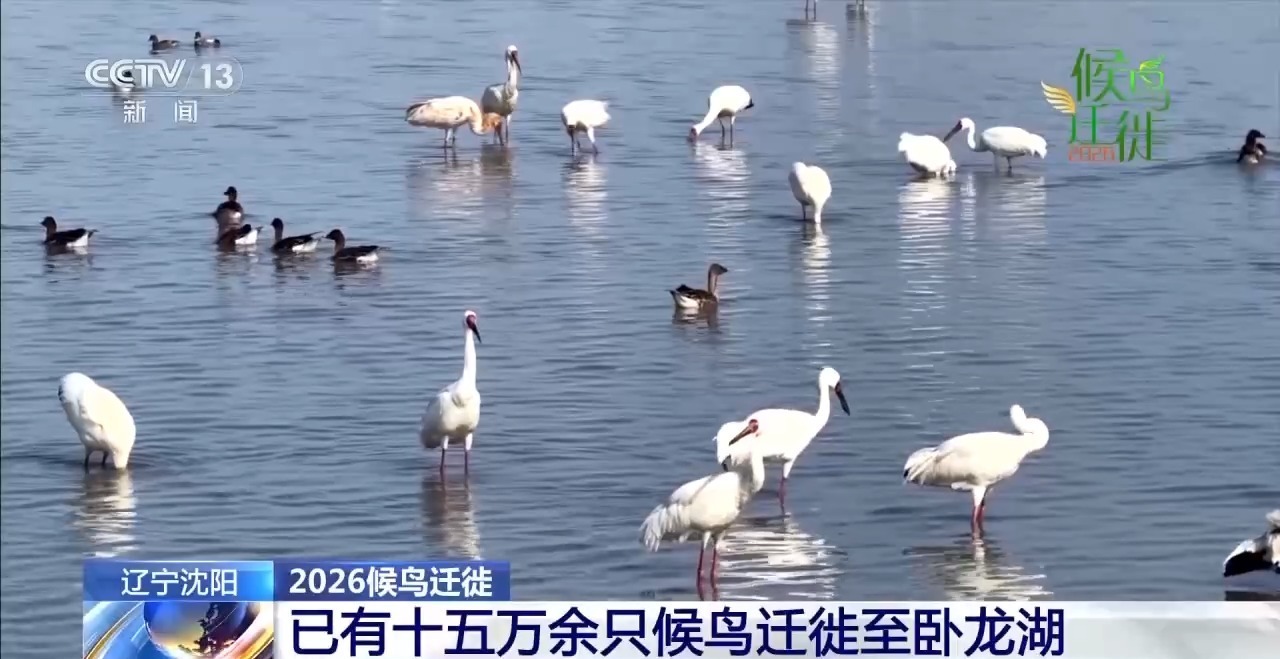 总台记者 安辰:每到春天,卧龙湖自然保护区都会成为候鸟北迁途中的“服务区”“加油站”,候鸟会在卧龙湖停留休整,补充体能后继续出发北上。