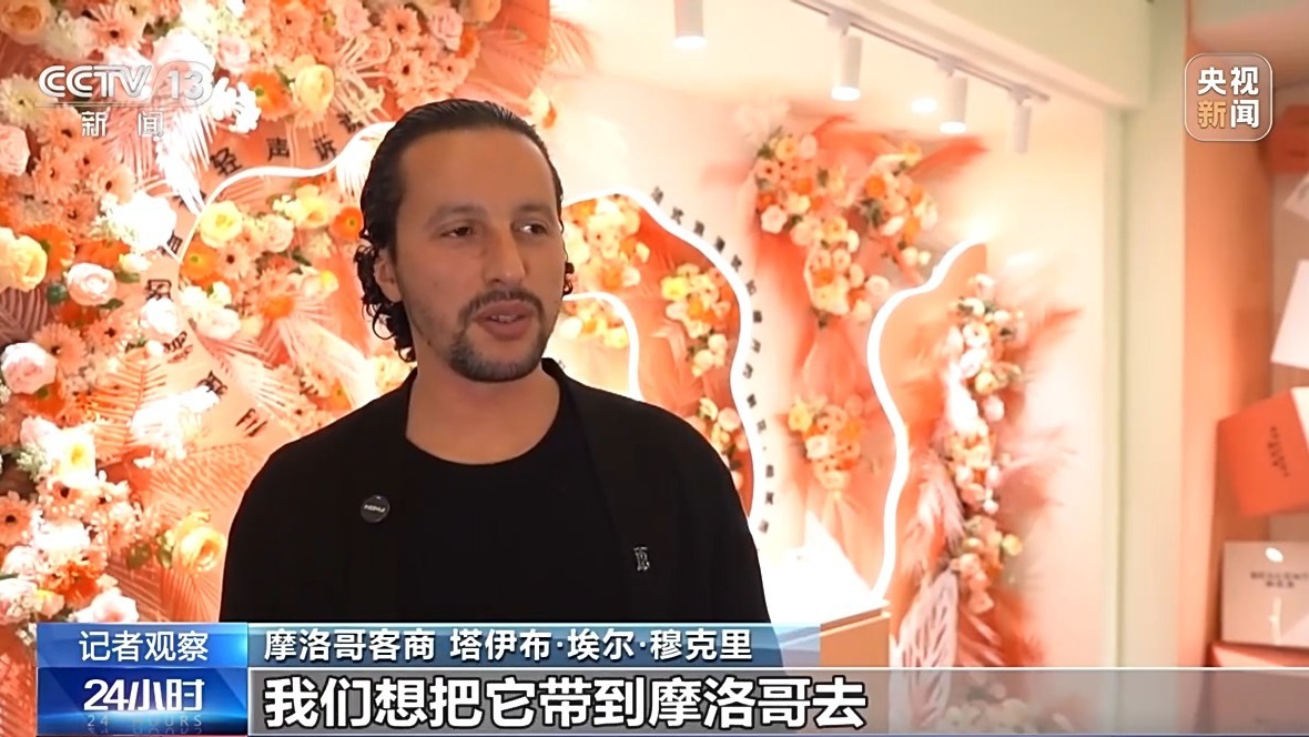 摩洛哥客商 塔伊布・埃尔・穆克里:这里有非常棒的面膜,我们想把它带到摩洛哥去。在摩洛哥有非常优质的玫瑰和精油,希望把这些原材料引进这个小镇,然后大家合作开发新的产品。