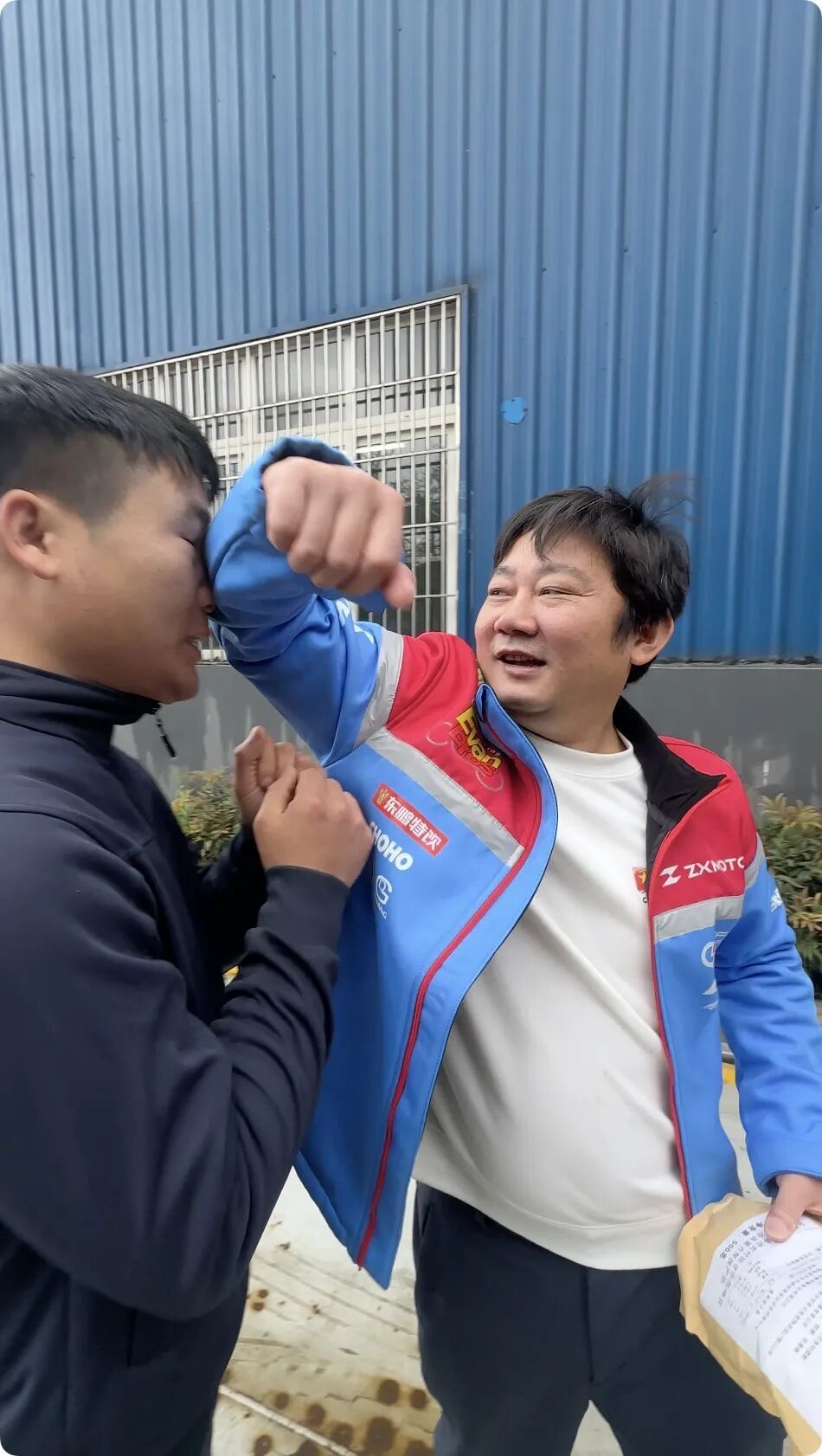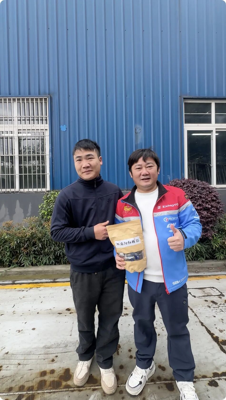张文册(左)送给张雪一包“麻阳古法红糖”。
